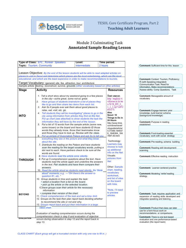 Annotated Sample Reading Lesson