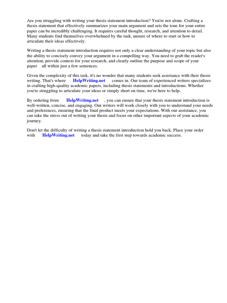 Writing a thesis statement introduction requires not only a clear understanding of your topic but also