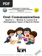 MELC 5-Q1. Distinguishing types of speeches and speech