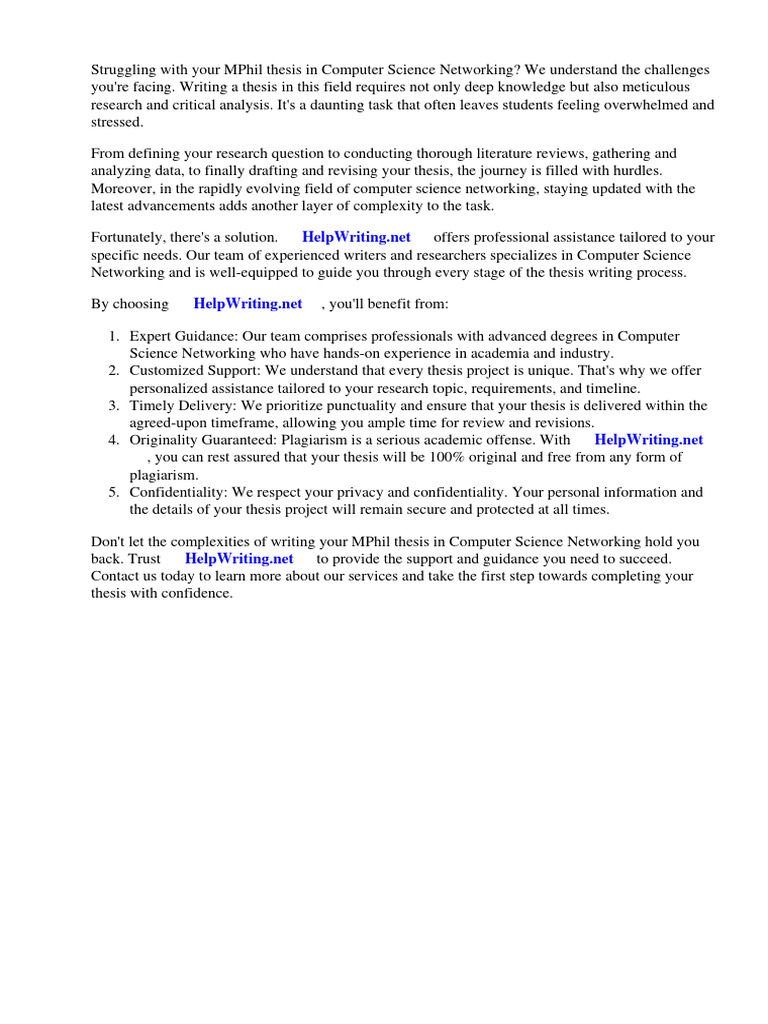 Networking and is well-equipped to guide you through every stage of the thesis writing process.