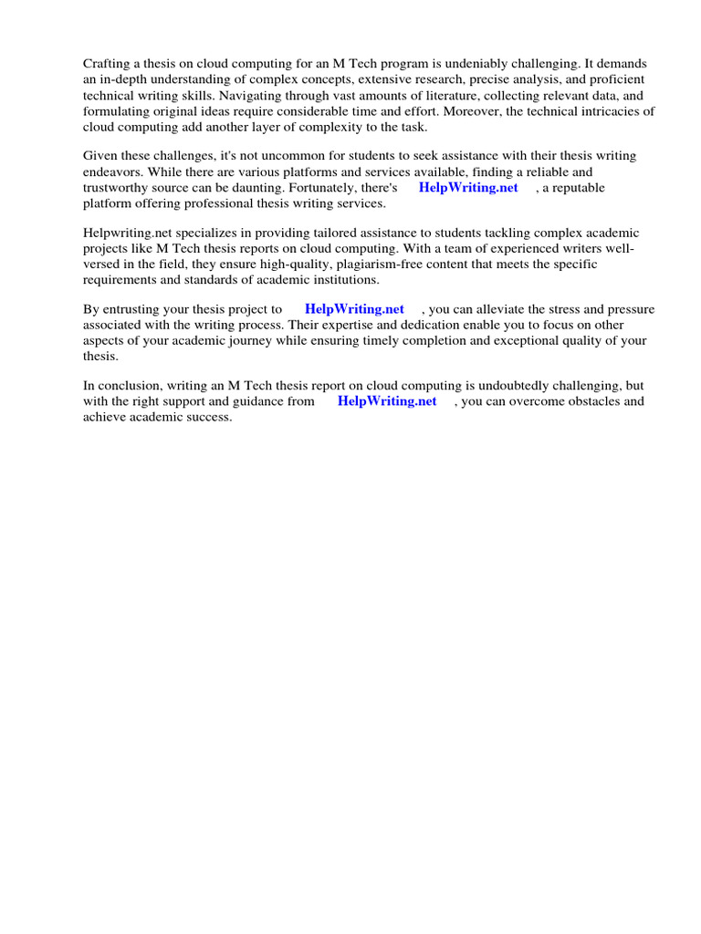 In conclusion, writing an M Tech thesis report on cloud computing is undoubtedly challenging, but
