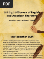 1. What does Swift allegorically imply in the narrative of Lilliput and of Brobdingnag?