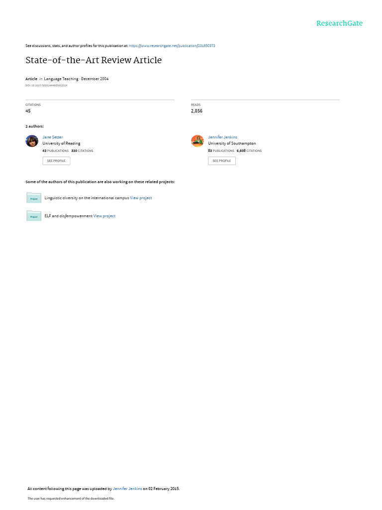 All content following this page was uploaded by Jennifer Jenkins on 02 February 2015.