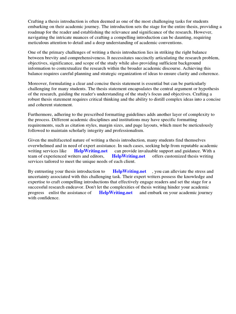 By entrusting your thesis introduction to ⇒ HelpWriting.net ⇔, you can alleviate the stress and