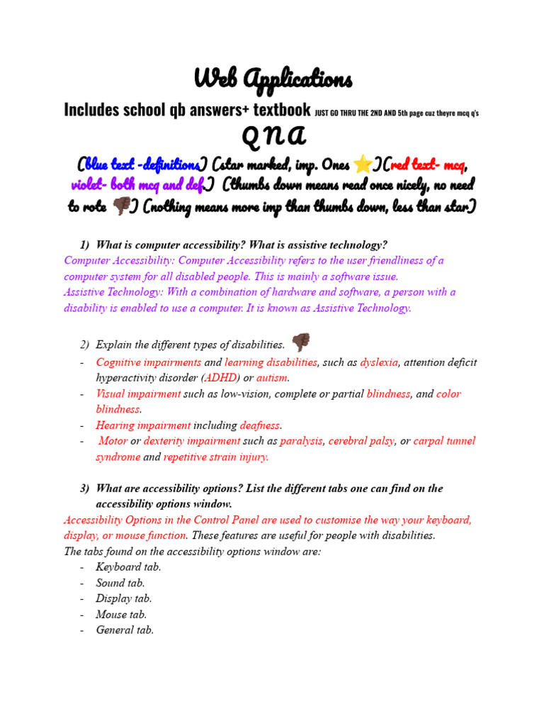 violet- both mcq and def.) (thumbs down means read once nicely, no need