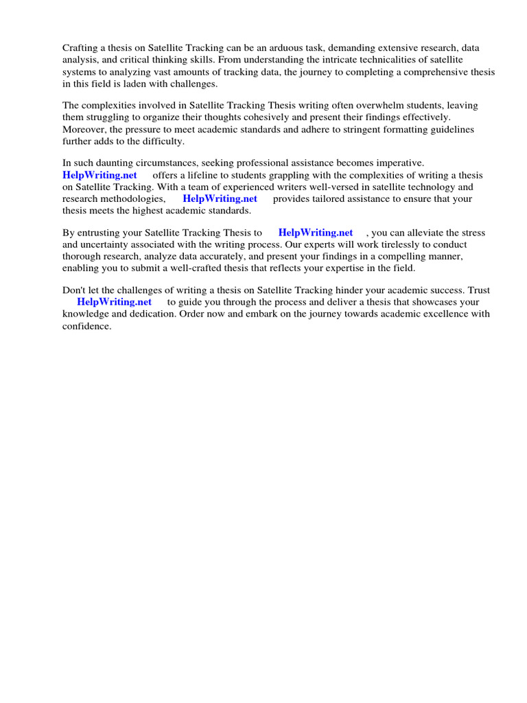 By entrusting your Satellite Tracking Thesis to ⇒ HelpWriting.net ⇔, you can alleviate the stress