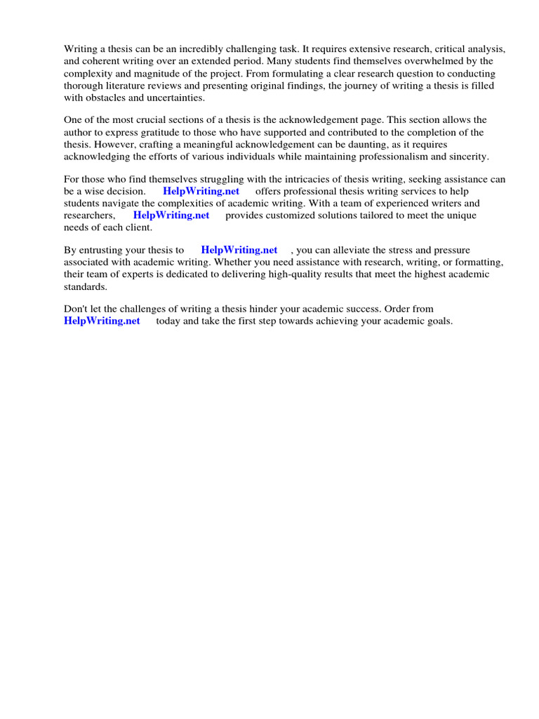 thesis. However, crafting a meaningful acknowledgement can be daunting, as it requires