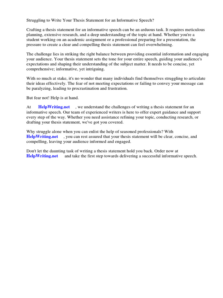 Crafting a thesis statement for an informative speech can be an arduous task. It requires meticulous
