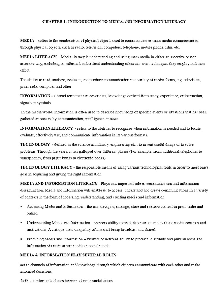 CHAPTER 1: INTRODUCTION TO MEDIA AND INFORMATION LITERACY