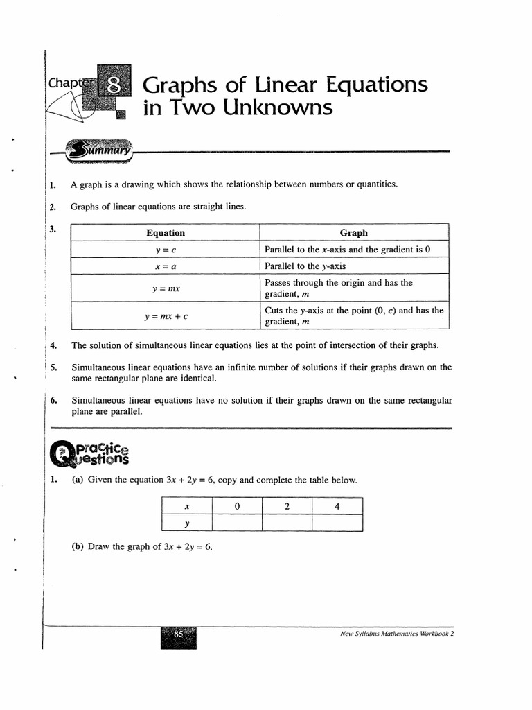 I 4. The solution of simultaneous linear equations lies at the point of intersection of their graphs.