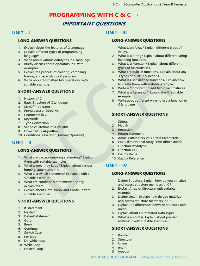5. Comments in C SHORT-ANSWER QUESTIONS