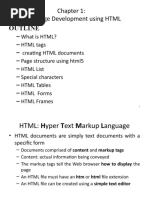 Images, Hyperlinks, Lists, Tables, Frames, HTML Forms.