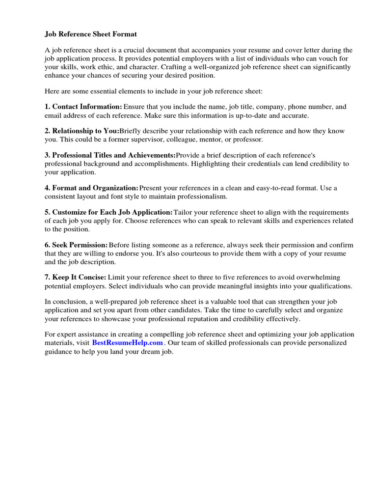 your skills, work ethic, and character. Crafting a well-organized job reference sheet can significantly