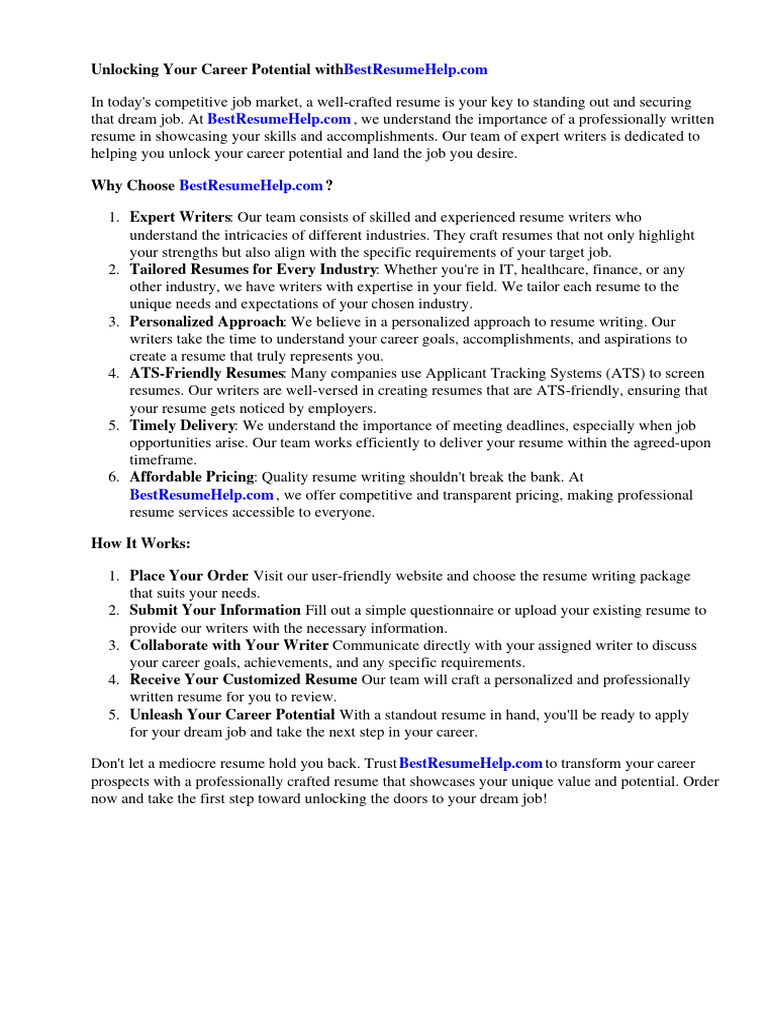 Unlocking Your Career Potential withBestResumeHelp.