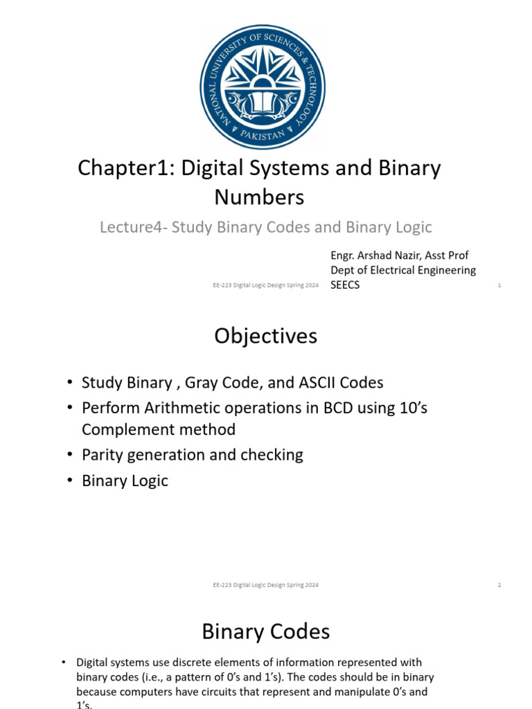 EE-223 Digital Logic Design Spring 2024 SEECS 1