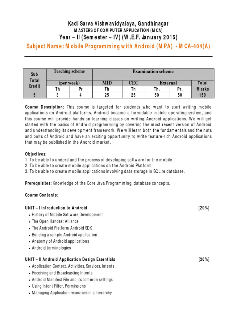 Subject Name: Mobile Programming with Android (MPA) - MCA-404(A)