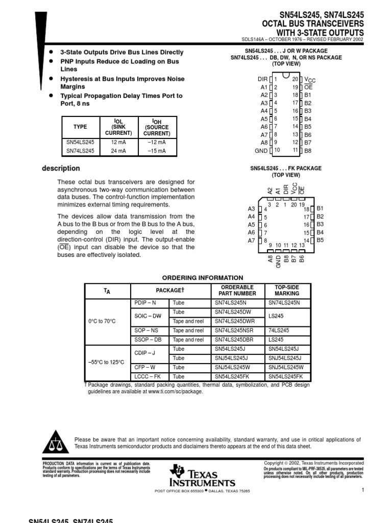 SN74LS245 24 mA –15 mA GND 10 11 B8