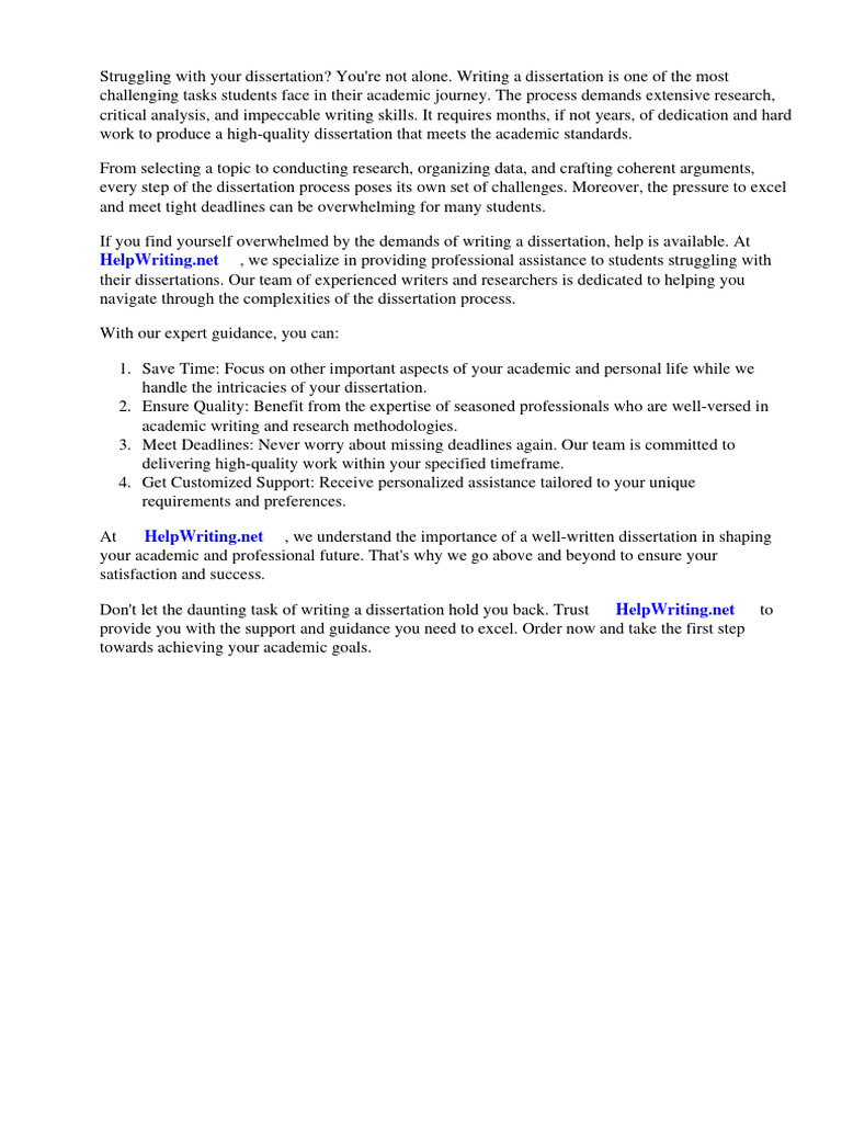 Don't let the daunting task of writing a dissertation hold you back. Trust ⇒ HelpWriting.net ⇔ to