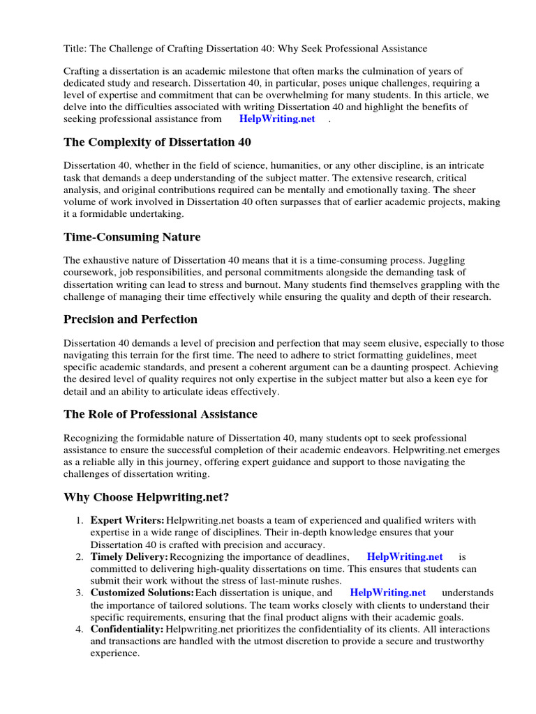 Title: The Challenge of Crafting Dissertation 40: Why Seek Professional Assistance