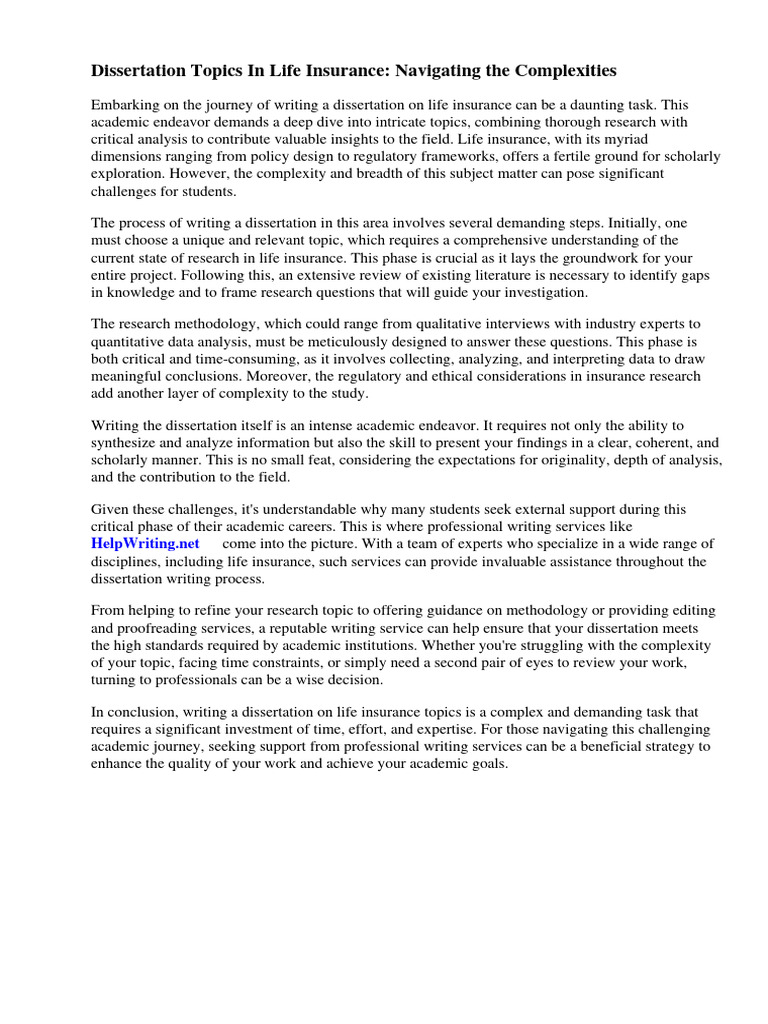 Embarking on the journey of writing a dissertation on life insurance can be a daunting task. This