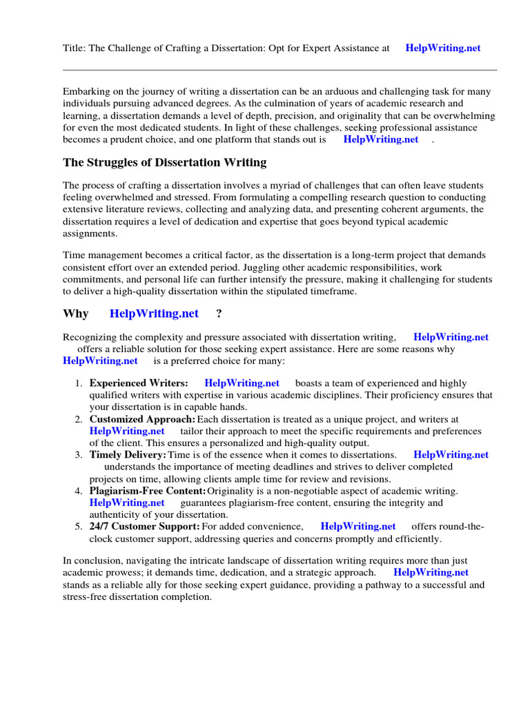 Title: The Challenge of Crafting a Dissertation: Opt for Expert Assistance at ⇒ HelpWriting.