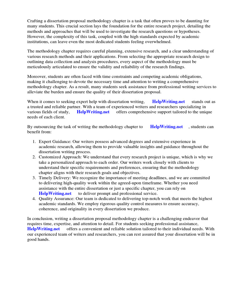 Crafting a dissertation proposal methodology chapter is a task that often proves to be daunting for