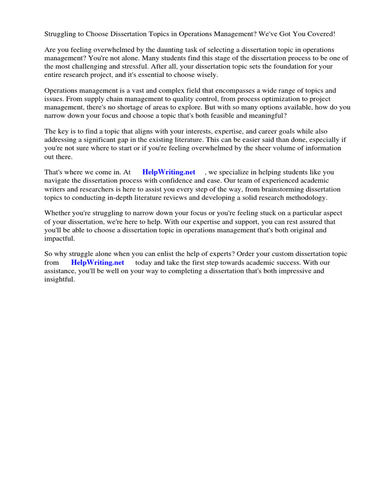 Are you feeling overwhelmed by the daunting task of selecting a dissertation topic in operations