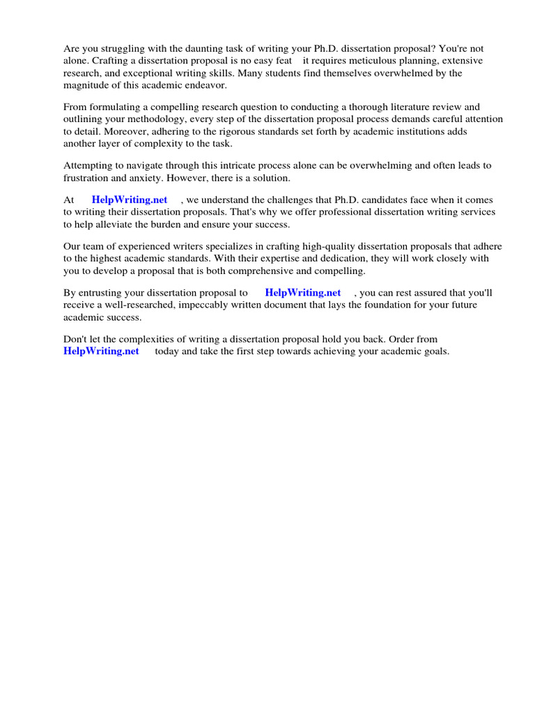 By entrusting your dissertation proposal to ⇒ HelpWriting.net ⇔, you can rest assured that you'll