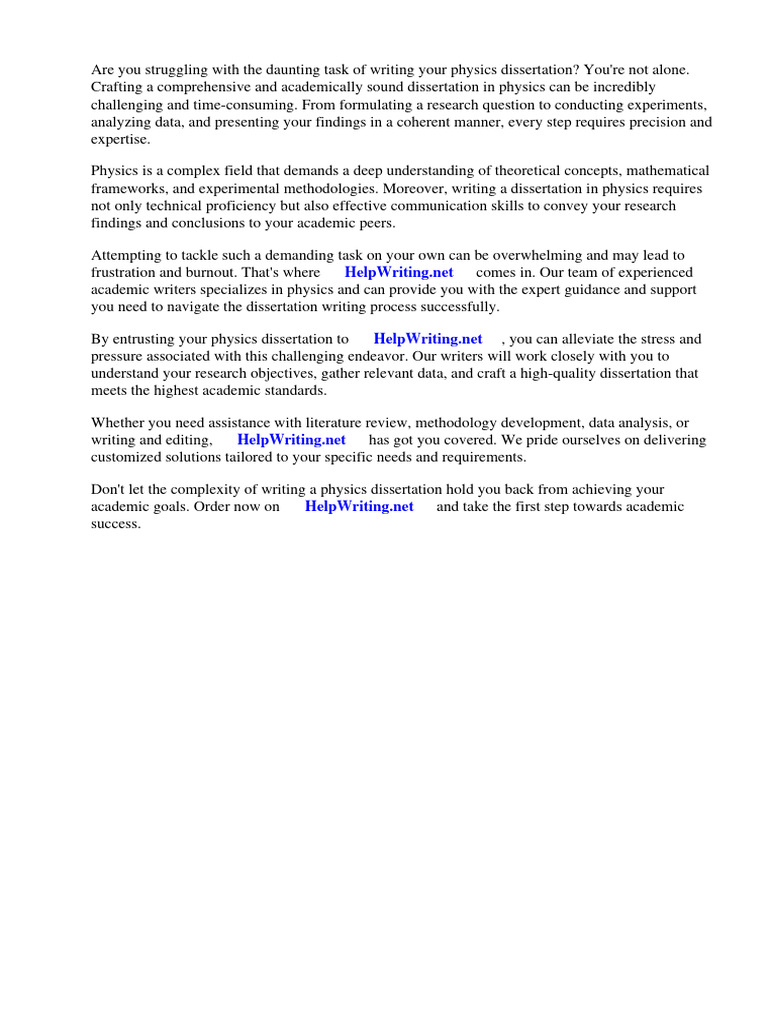 By entrusting your physics dissertation to ⇒ HelpWriting.net ⇔, you can alleviate the stress and