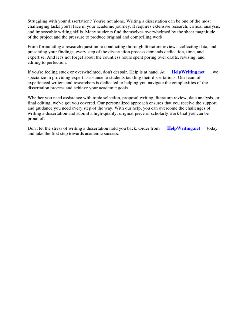Don't let the stress of writing a dissertation hold you back. Order from ⇒ HelpWriting.net ⇔ today