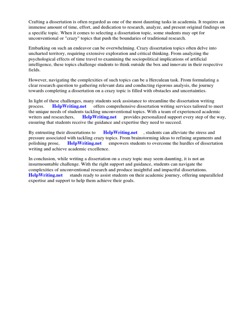 In conclusion, while writing a dissertation on a crazy topic may seem daunting, it is not an