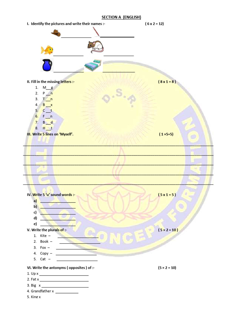 III. Write 5 lines on ‘Myself’. ( 1 ×5=5)