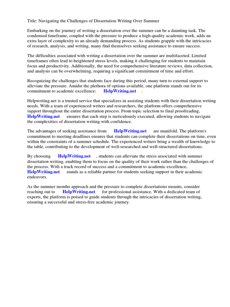 Title: Navigating the Challenges of Dissertation Writing Over Summer