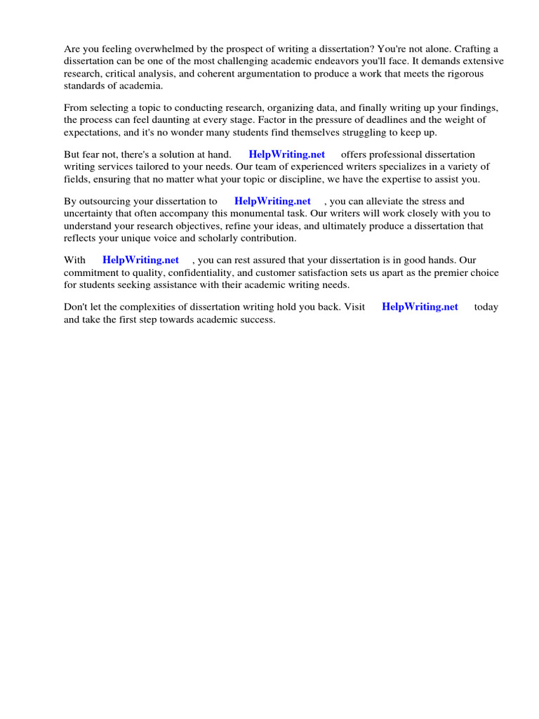 But fear not, there's a solution at hand. ⇒ HelpWriting.net ⇔ offers professional dissertation