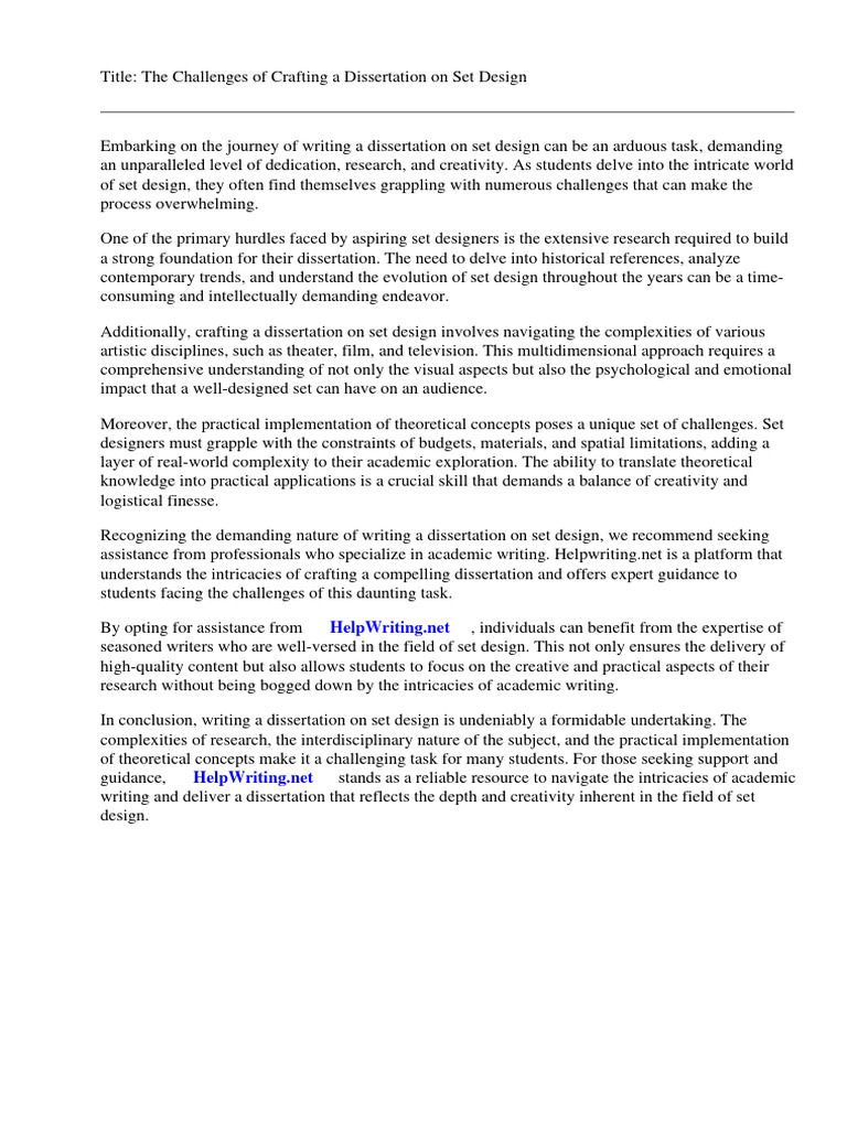 Additionally, crafting a dissertation on set design involves navigating the complexities of various