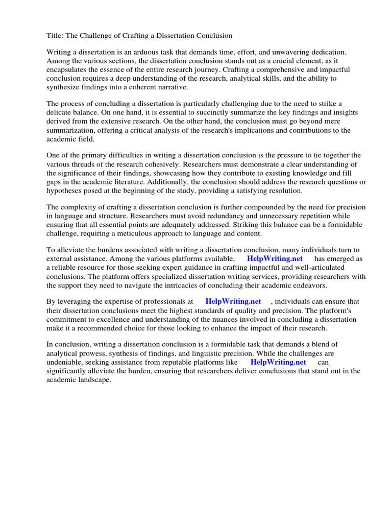 To alleviate the burdens associated with writing a dissertation conclusion, many individuals turn to