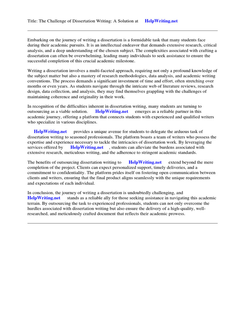 Title: The Challenge of Dissertation Writing: A Solution at⇒ HelpWriting.
