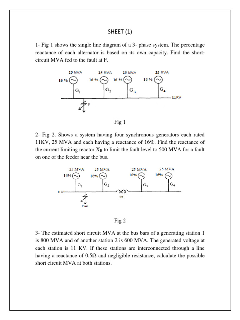 1- Fig 1 shows the single line diagram of a 3- phase system. The percentage