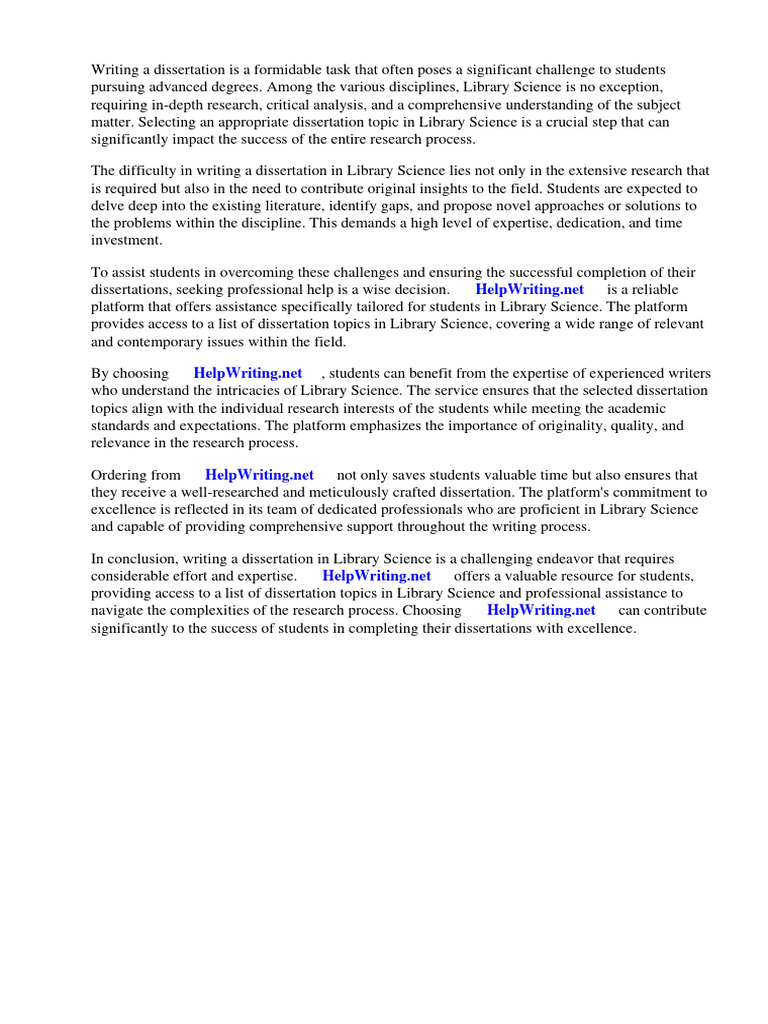 matter. Selecting an appropriate dissertation topic in Library Science is a crucial step that can