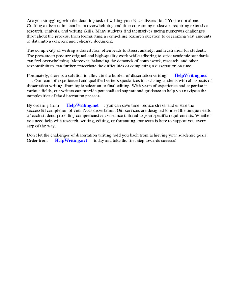Are you struggling with the daunting task of writing your Nccs dissertation? You're not alone.
