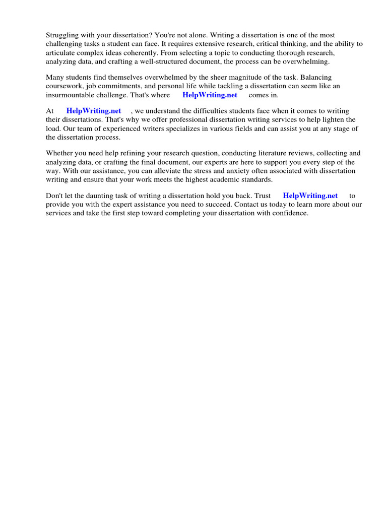Don't let the daunting task of writing a dissertation hold you back. Trust ⇒ HelpWriting.net ⇔ to