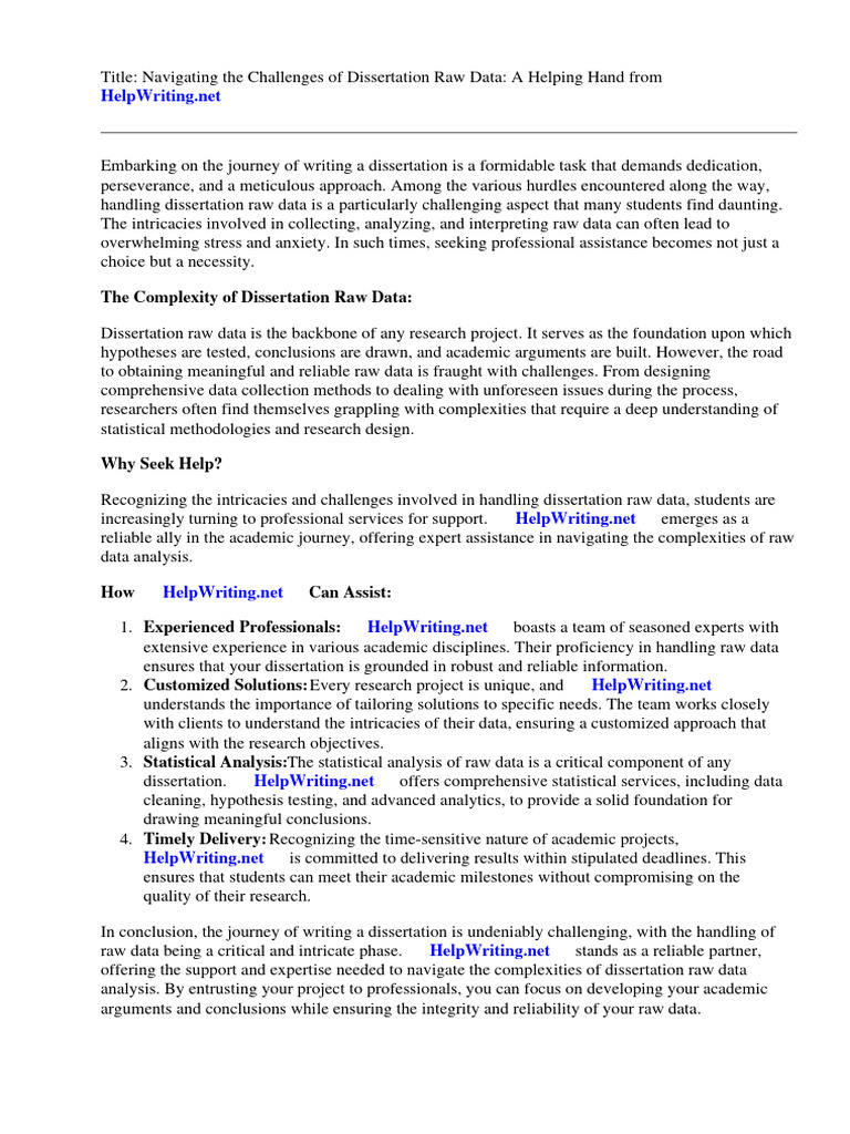 Recognizing the intricacies and challenges involved in handling dissertation raw data, students are