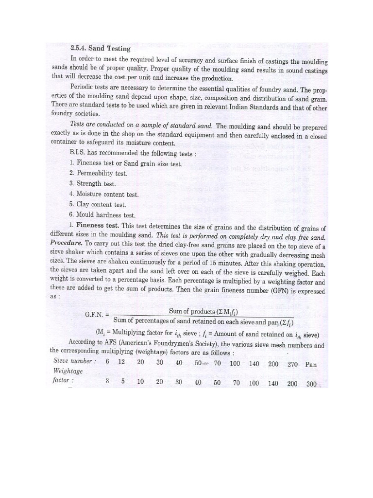 erties of the moulding sand depend upon shape, size, composition and distribution of sand grain,