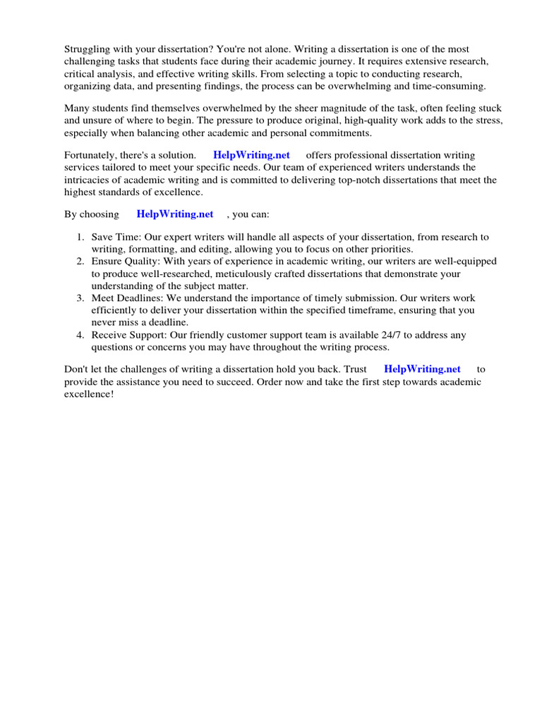 Fortunately, there's a solution. ⇒ HelpWriting.net ⇔ offers professional dissertation writing