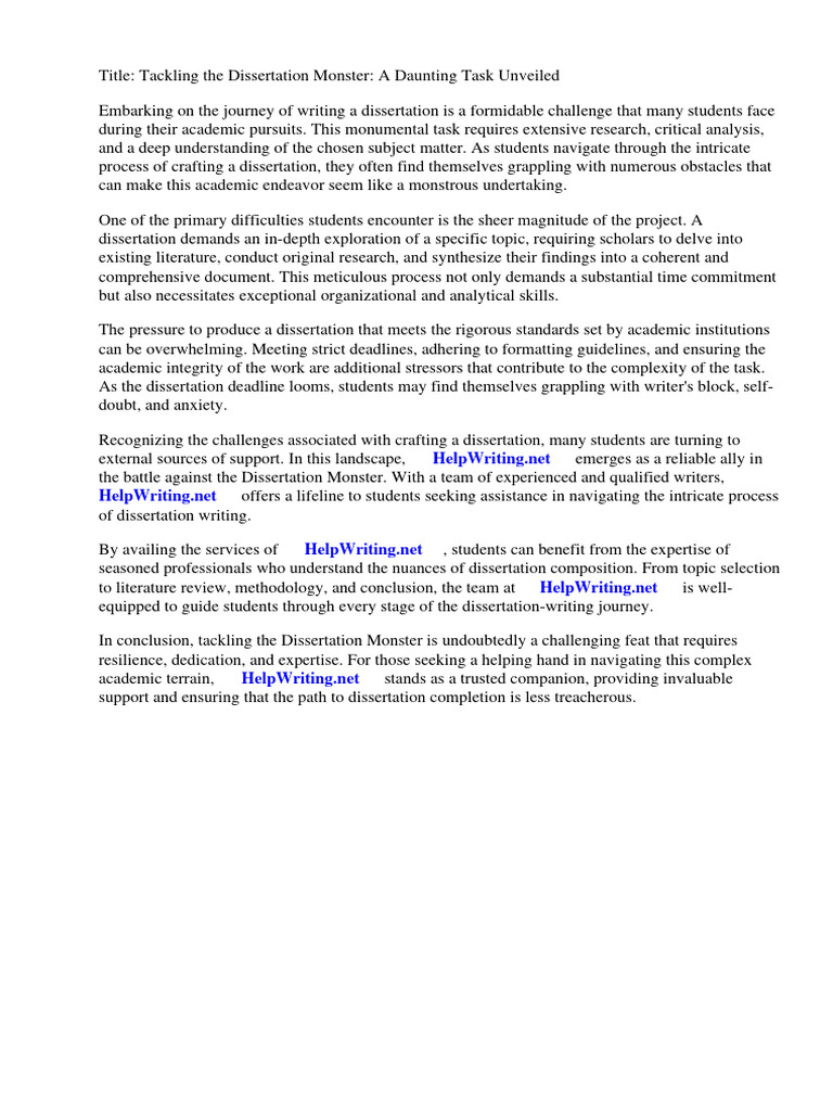 Title: Tackling the Dissertation Monster: A Daunting Task Unveiled