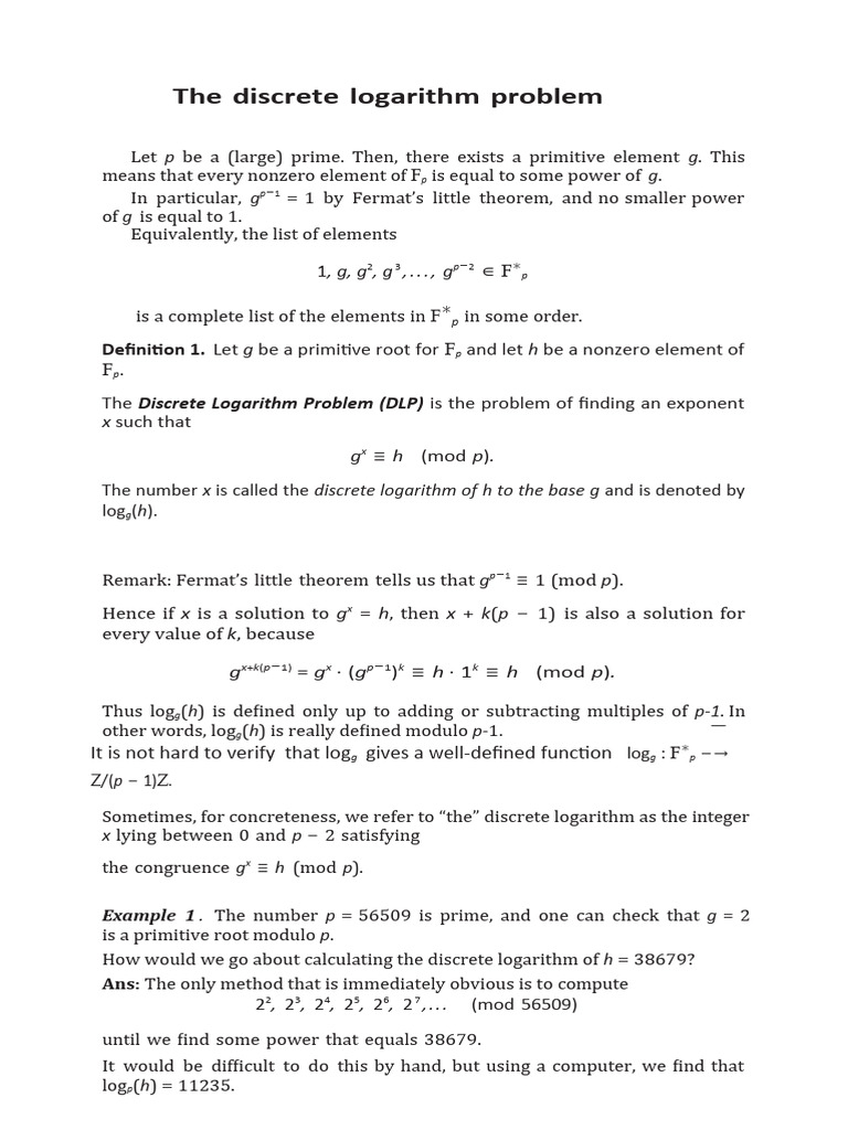 Thus logg(h) is defined only up to adding or subtracting multiples of p-1. In