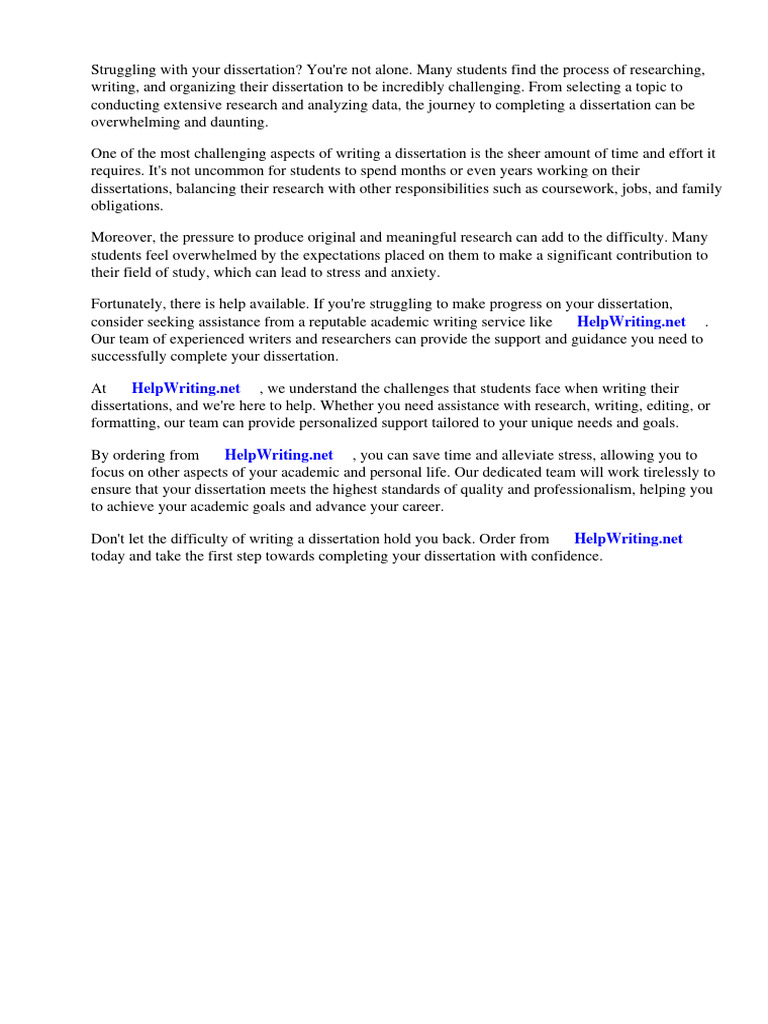 Don't let the difficulty of writing a dissertation hold you back. Order from ⇒ HelpWriting.net ⇔