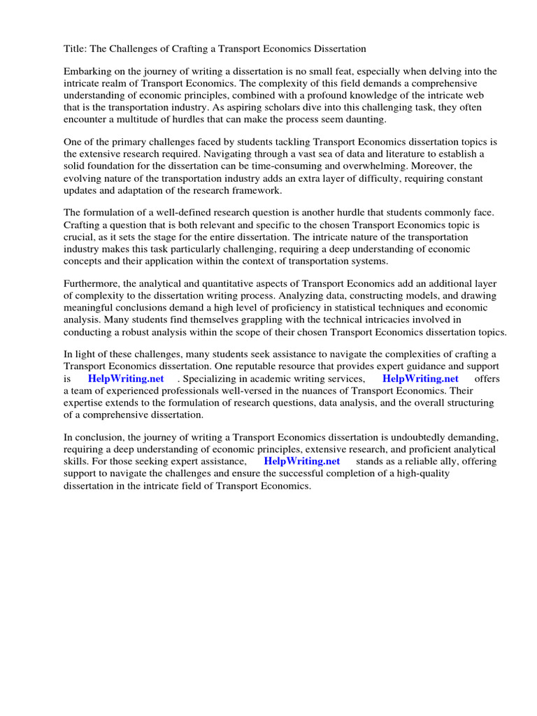 Transport Economics dissertation. One reputable resource that provides expert guidance and support
