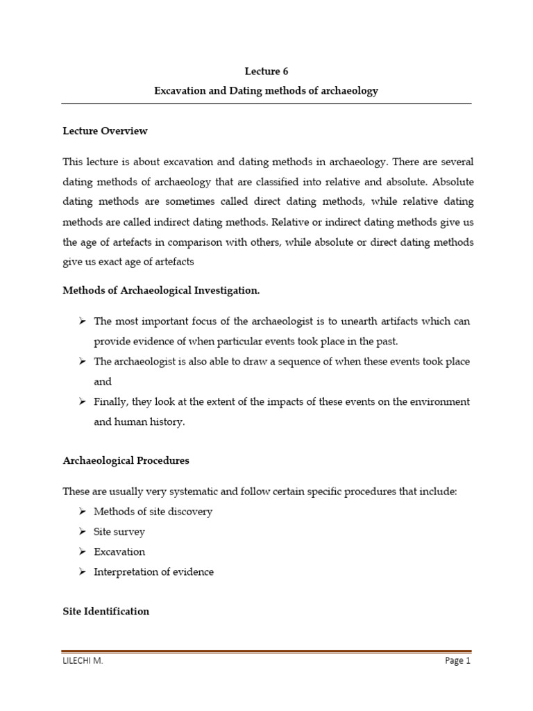 This lecture is about excavation and dating methods in archaeology. There are several