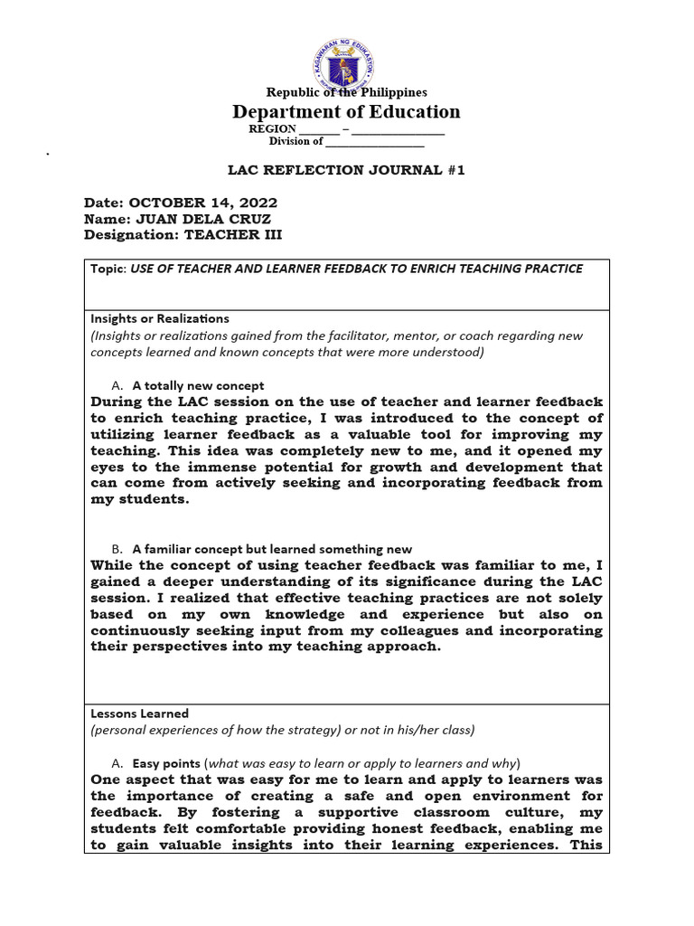 Topic: USE OF TEACHER AND LEARNER FEEDBACK TO ENRICH TEACHING PRACTICE